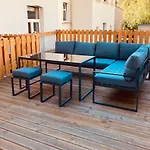 Grosser Terrassentraum In Klein Venedig bestaat uit een zitruimte en is voorzien van een bank, evenals moderne voorzieningen zoals een TV en een flatscreen TV met satellietzenders. De veiligheidsvoorzieningen op de kamer bestaan uit rookmelders. Het appartement heeft 5 slaapkamers. 1 badkamer met een apart toilet, een badkuip en een douche, evenals een haardroger en badlakens wordt aangeboden.